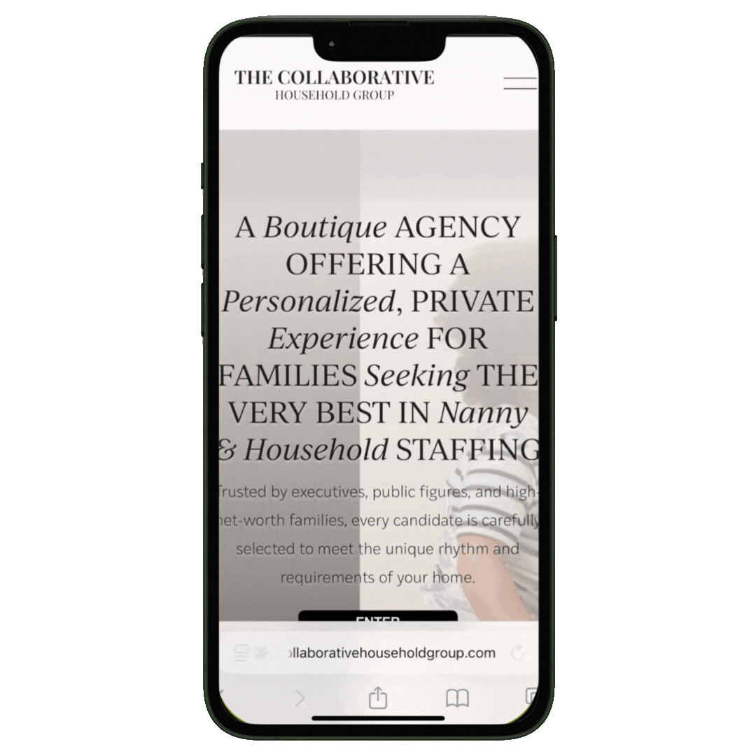At the owner’s request, we delivered a professional, luxury, website paired with cohesive brand materials. The most rigorous aspect of the project was integrating business systems that allow staff to be sourced and onboarded seamlessly, while maintaining the the firm’s sleek professionalism.